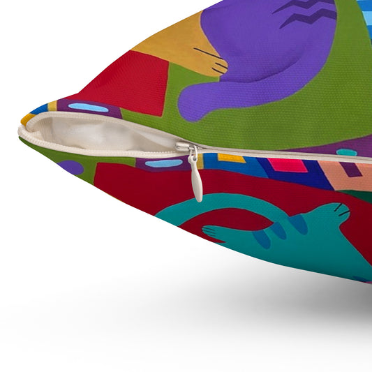 Cojín cuadrado con diseño de gato colorido: decoración vibrante para amantes de los animales