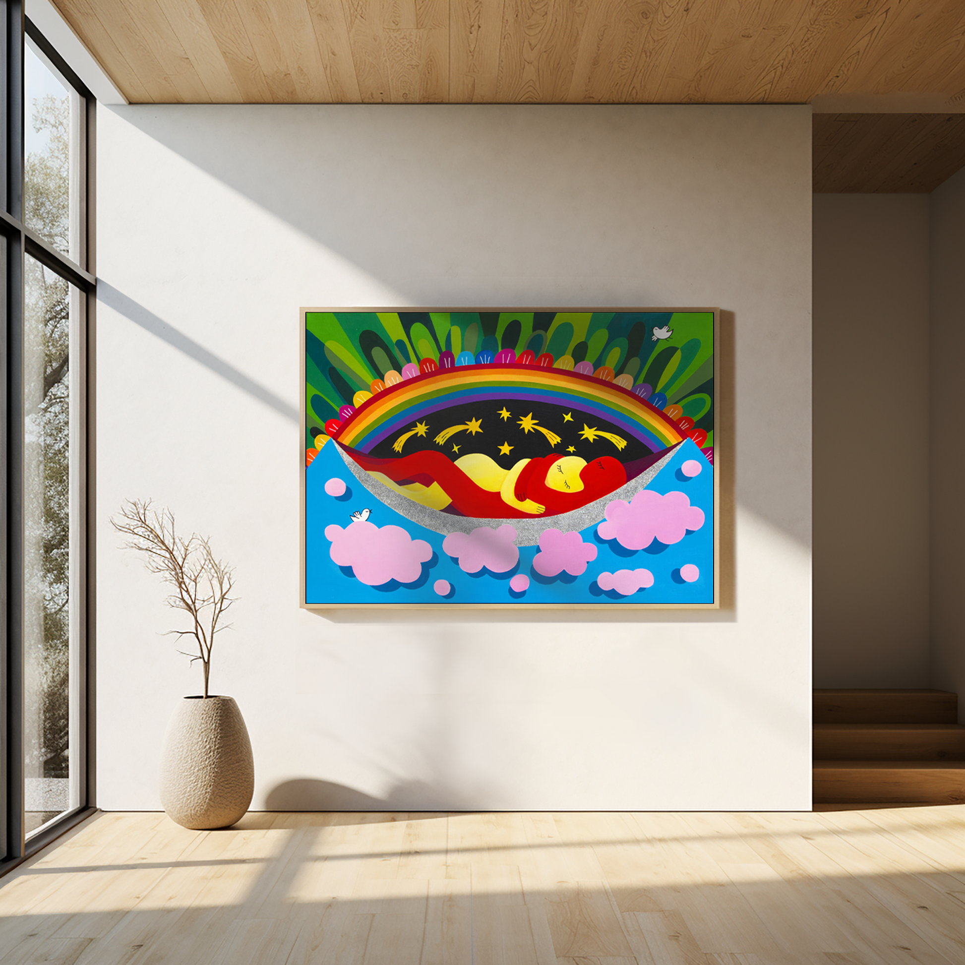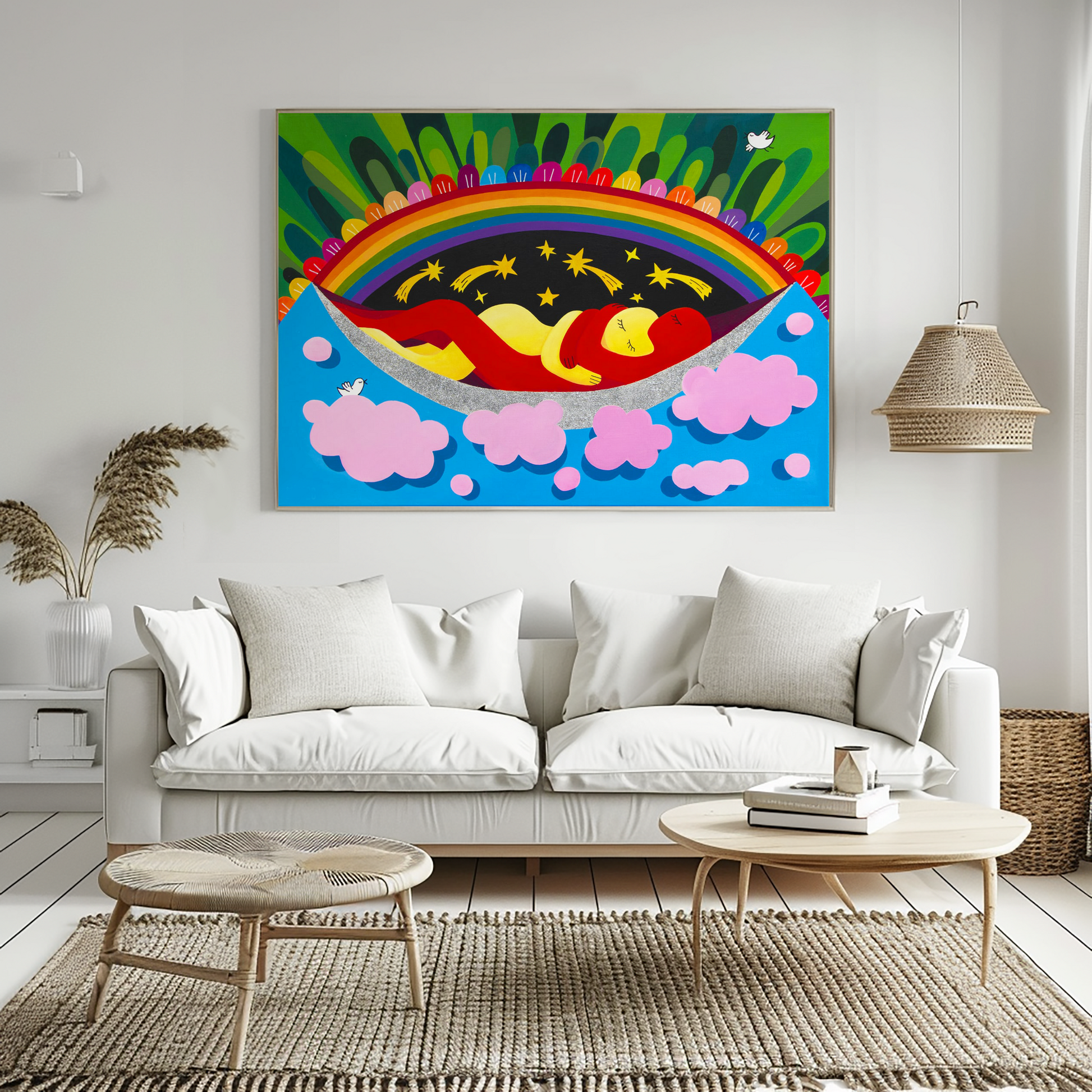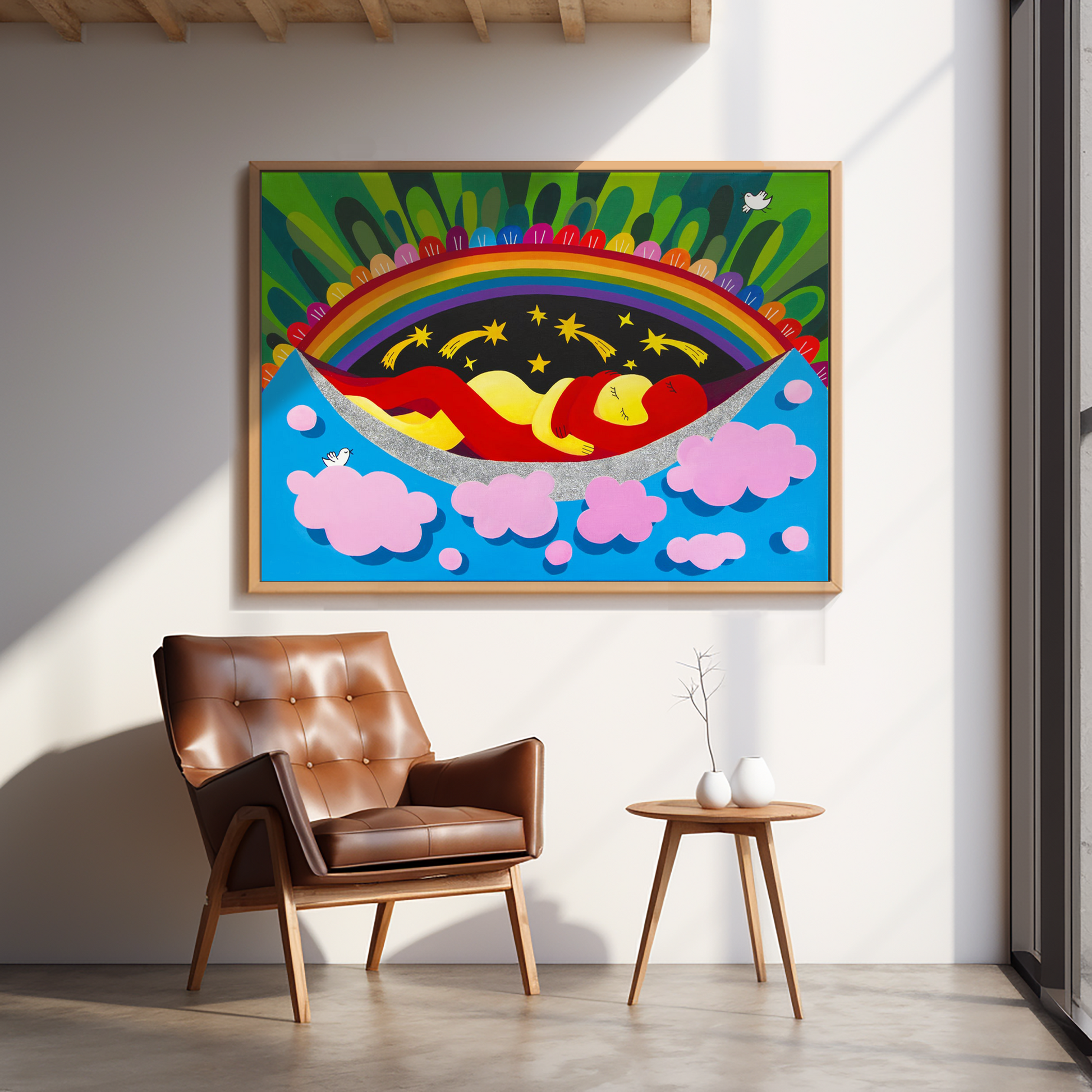 Buscaba algo especial para mi dormitorio, y la obra de Marina me llamó la atención. 🖼️ ¡Cuando llegó la lámina, me quedé atónita! Los colores, la energía... todo se siente tan vivo.