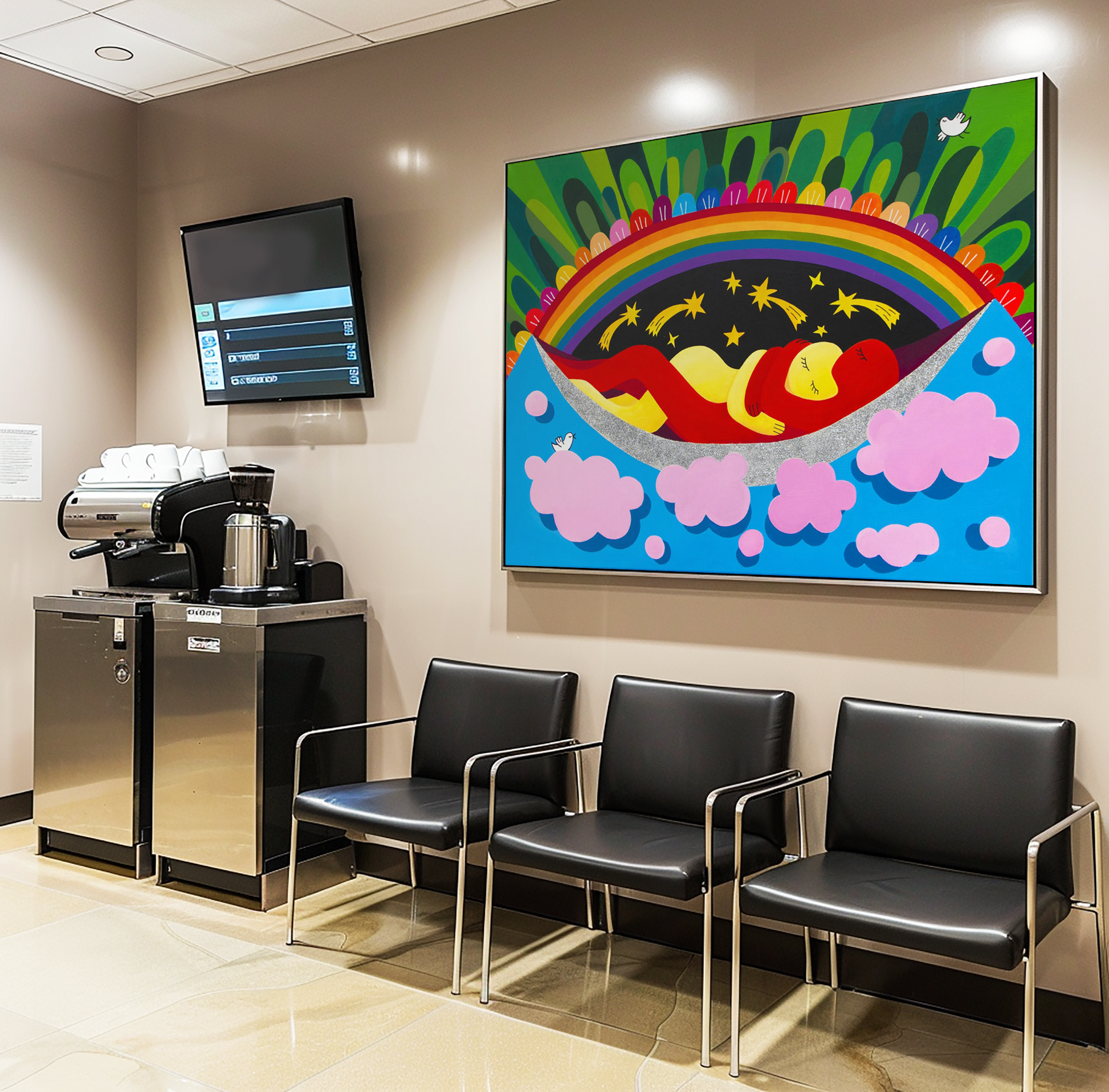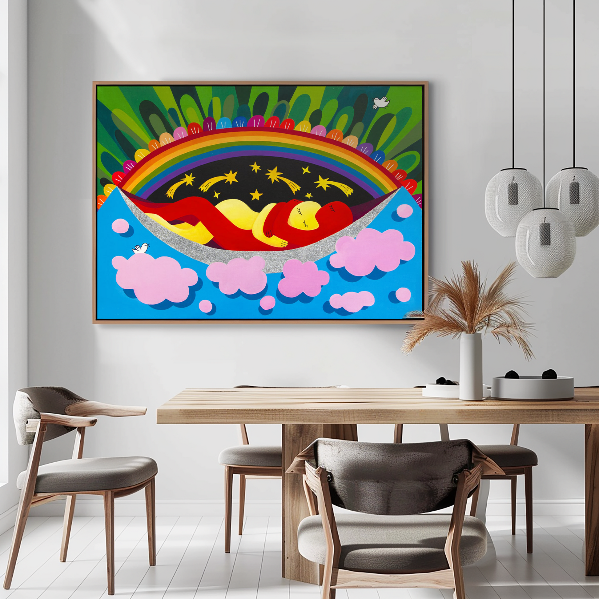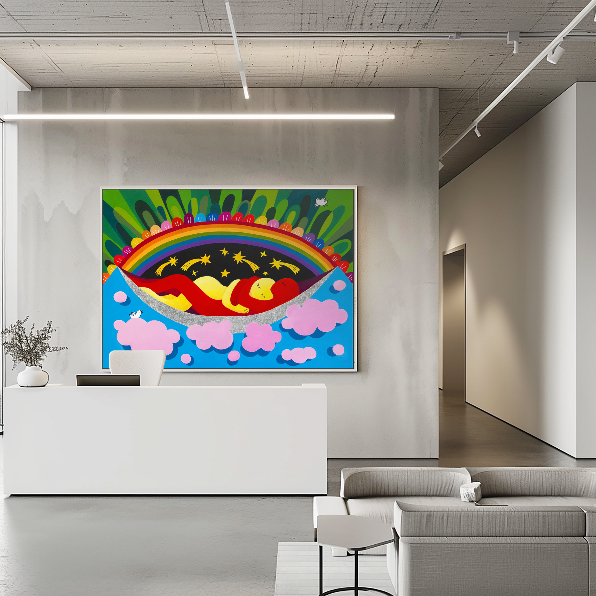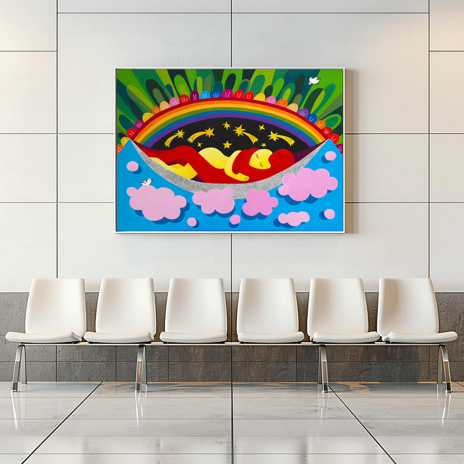 Buscaba algo especial para mi dormitorio, y la obra de Marina me llamó la atención. 🖼️ ¡Cuando llegó la lámina, me quedé atónita! Los colores, la energía... todo se siente tan vivo.