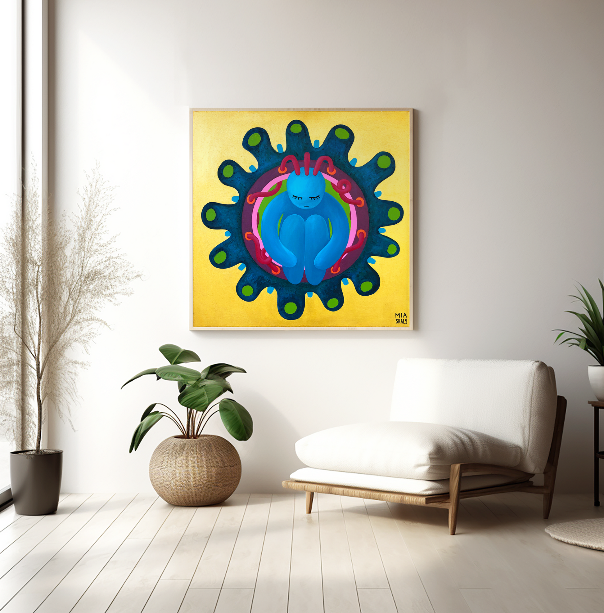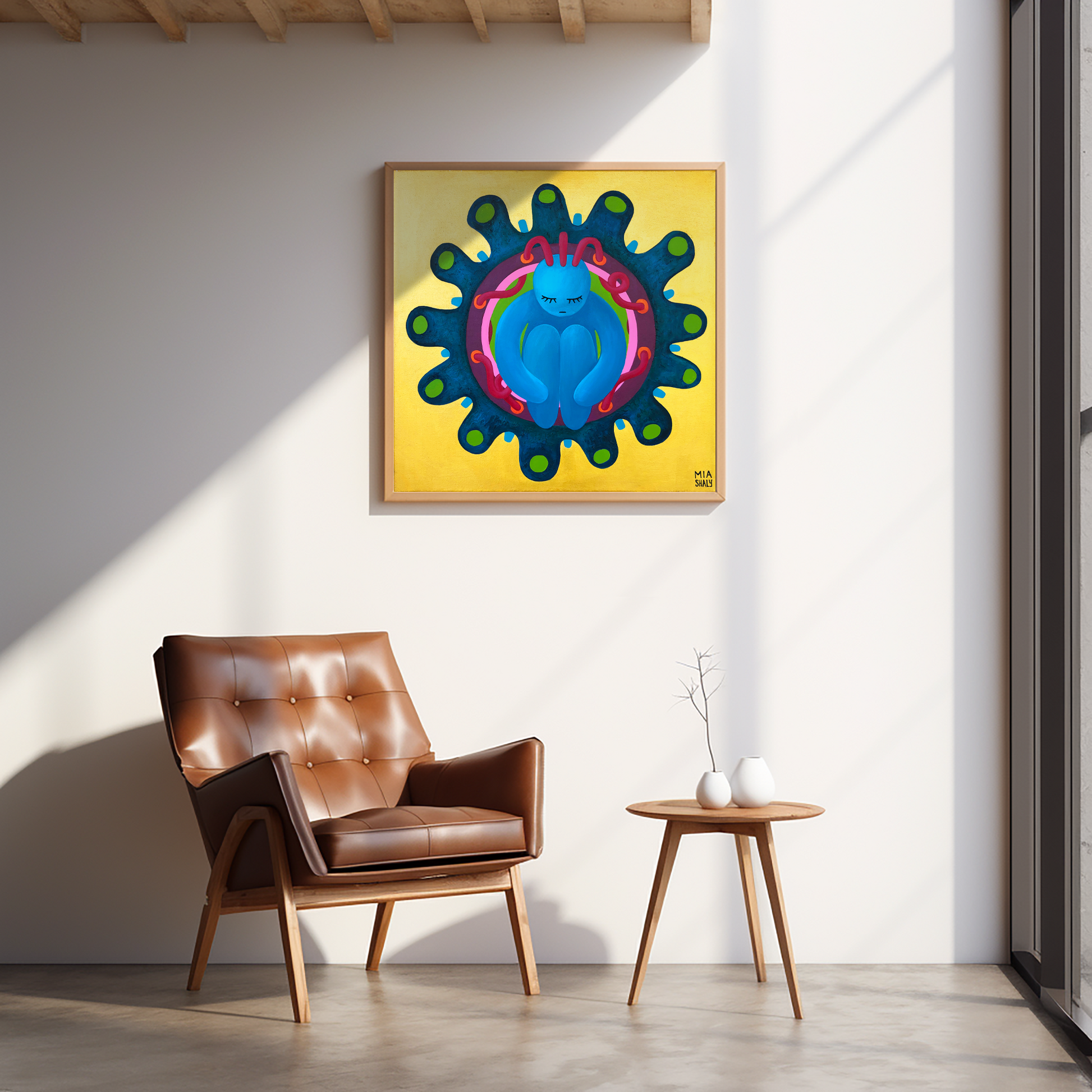 Buscaba algo especial para mi dormitorio, y la obra de Marina me llamó la atención. 🖼️ ¡Cuando llegó la lámina, me quedé atónita! Los colores, la energía... todo se siente tan vivo.
