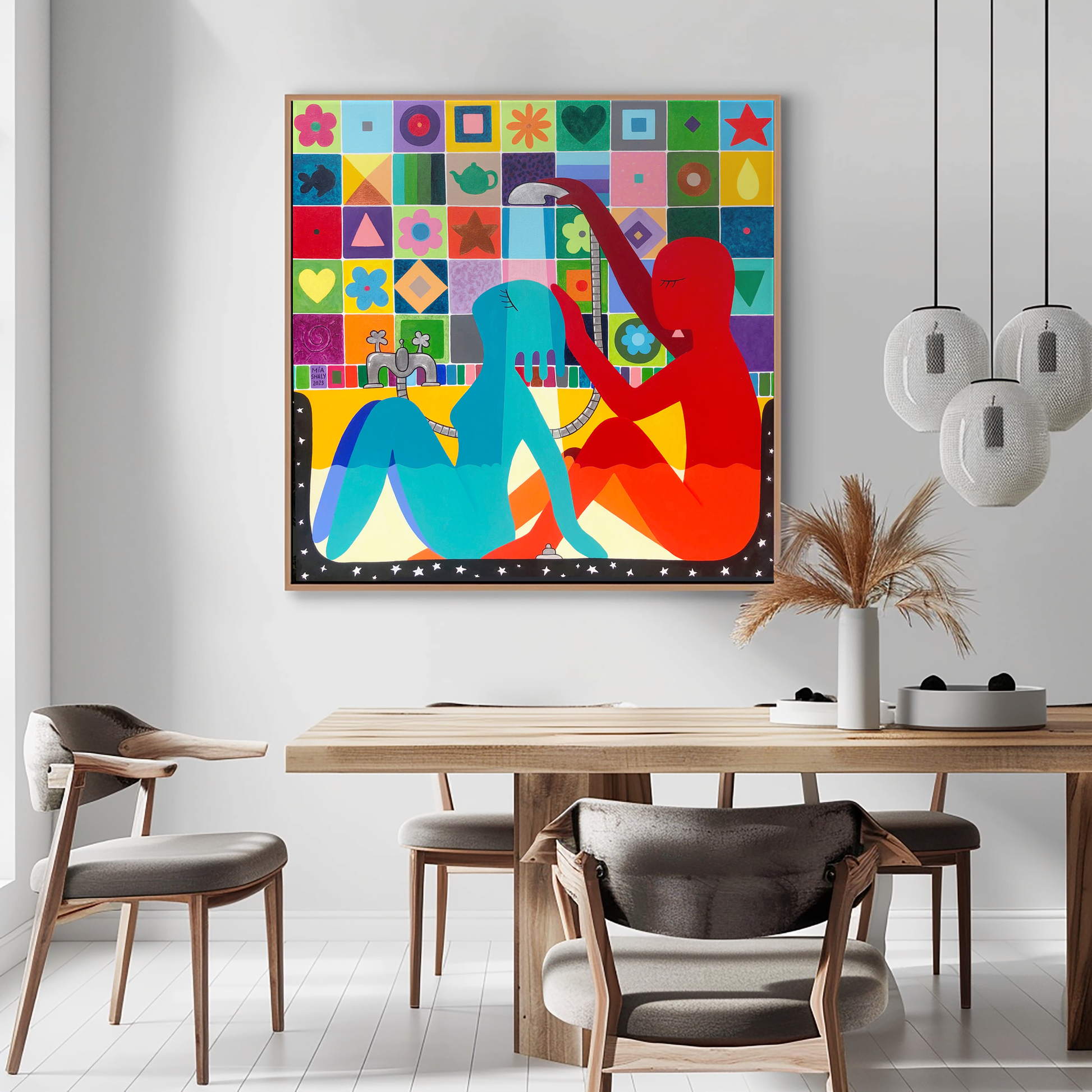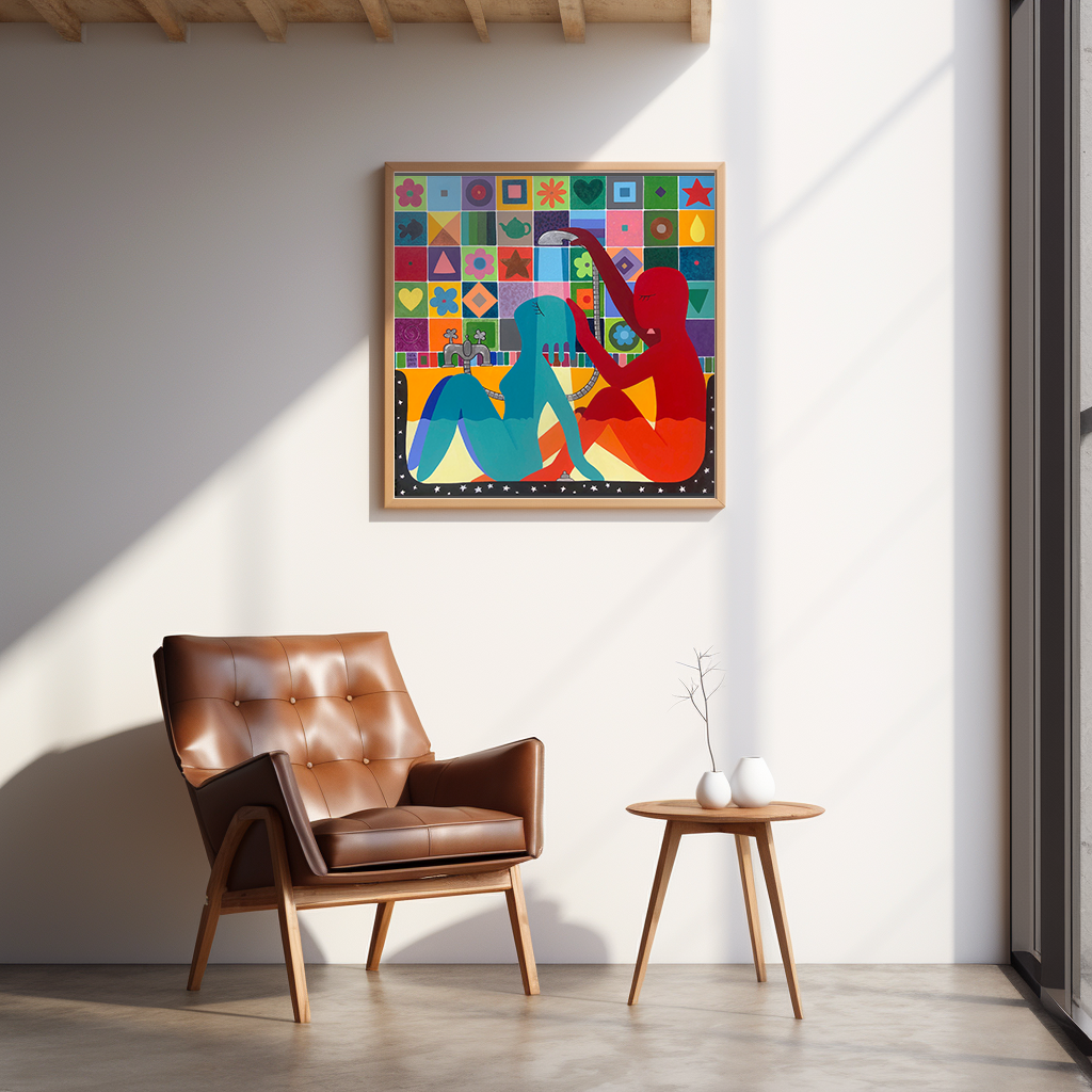 Buscaba algo especial para mi dormitorio, y la obra de Marina me llamó la atención. 🖼️ ¡Cuando llegó la lámina, me quedé atónita! Los colores, la energía... todo se siente tan vivo.