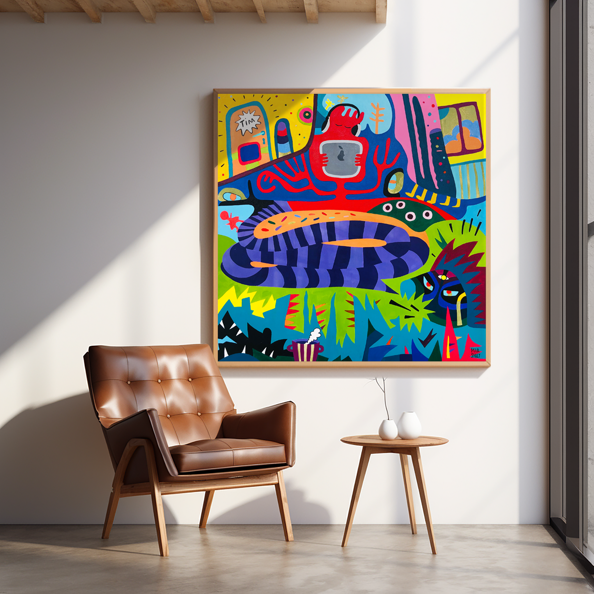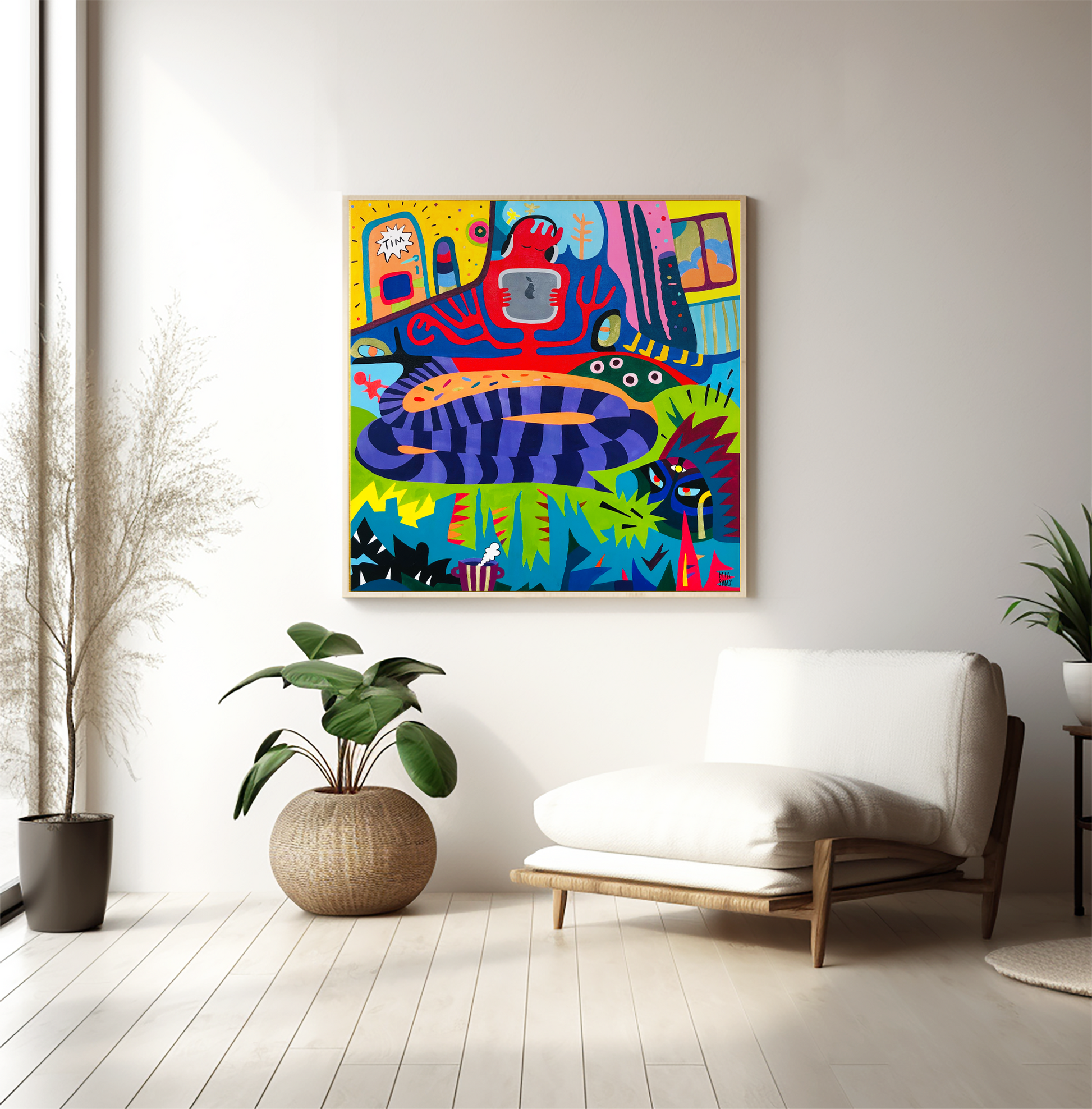Buscaba algo especial para mi dormitorio, y la obra de Marina me llamó la atención. 🖼️ ¡Cuando llegó la lámina, me quedé atónita! Los colores, la energía... todo se siente tan vivo.