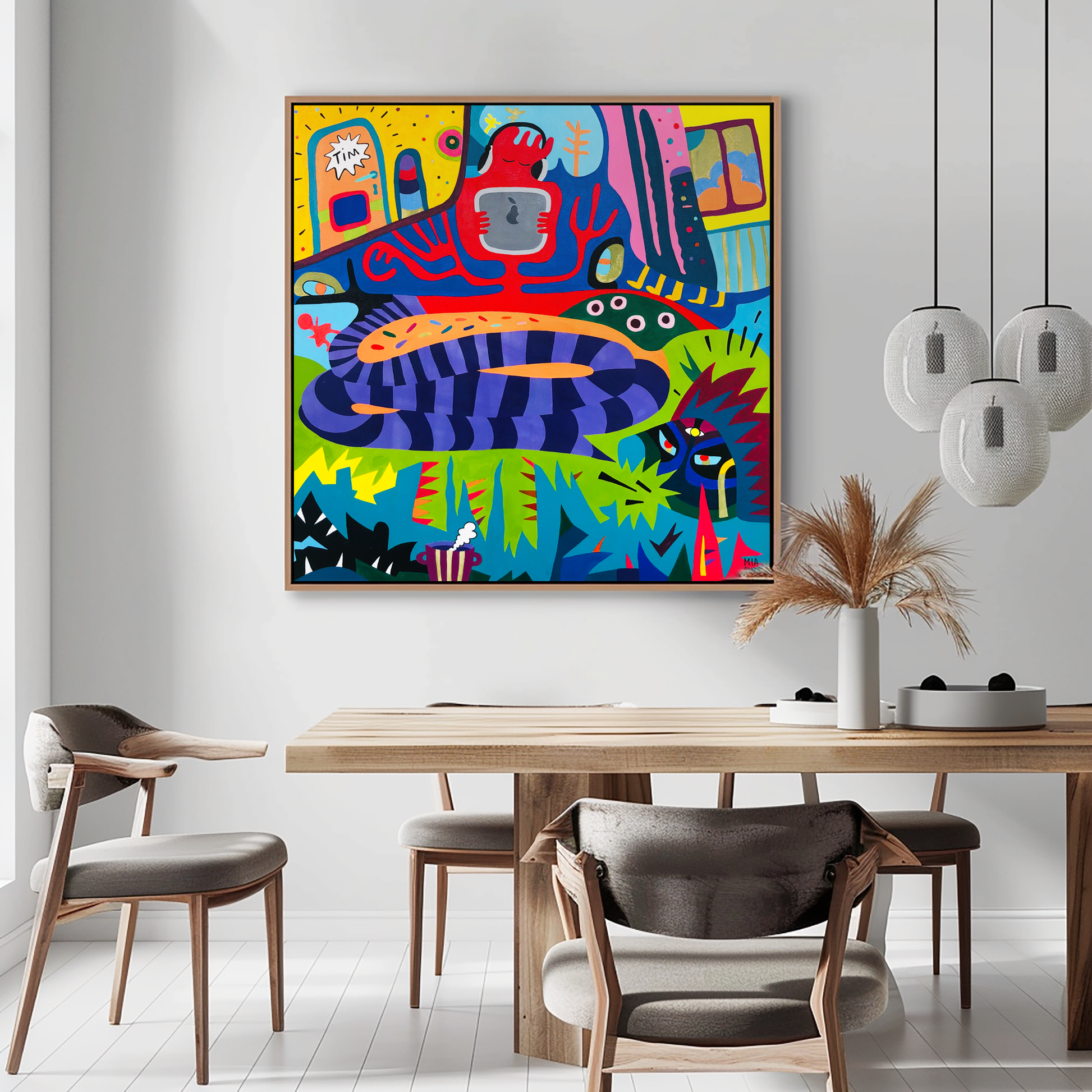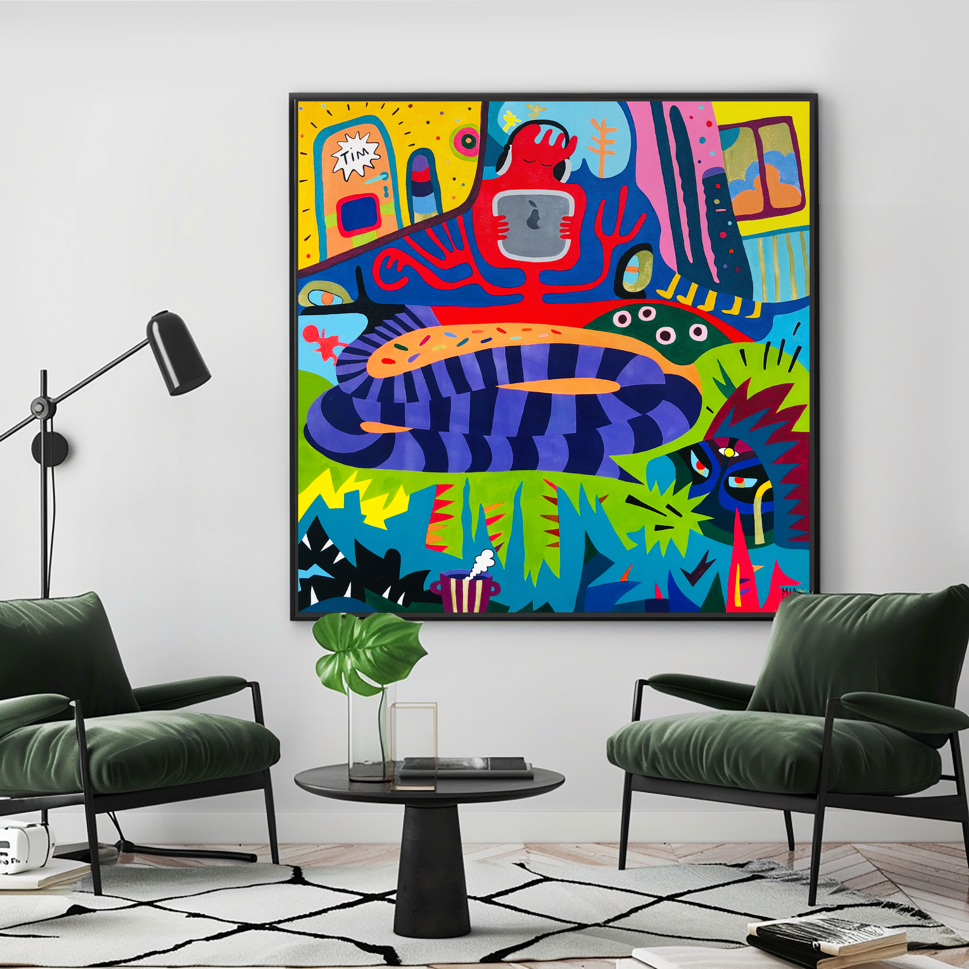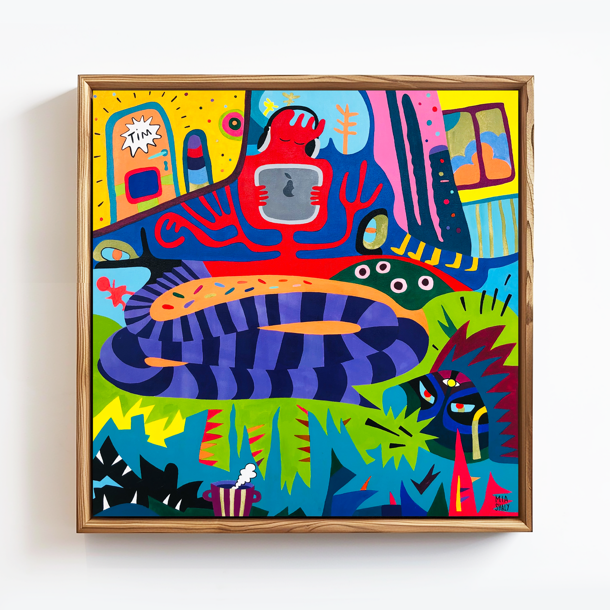 After a few attempts, you realize he's lost in his own world and can't hear a thing, and it stirs up a feeling of... let's call it exasperation. This painting humorously celebrates him. Being a mom to a son is an adventure! Boys are mischievous, endlessly curious, and keep you on your toes. I'm so proud of my son — he's amazing, full of life, and truly one of a kind. This painting reflects the everyday humor, love, and joy of raising him.